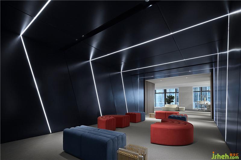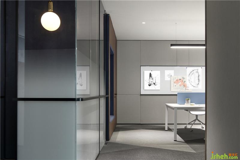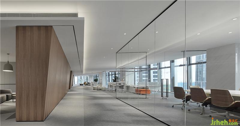 大面積玻璃代替厚重墻體,輕薄的線條邊框隱匿其中,共享會議室的物理分區(qū)體量被減至最小?!巴该骱凶印钡慕Y(jié)構(gòu)被光線打通,一個(gè)高端質(zhì)感迭代空間內(nèi),空間與工作發(fā)生緊密而富有無盡創(chuàng)造力的未來。裝修設(shè)計(jì)