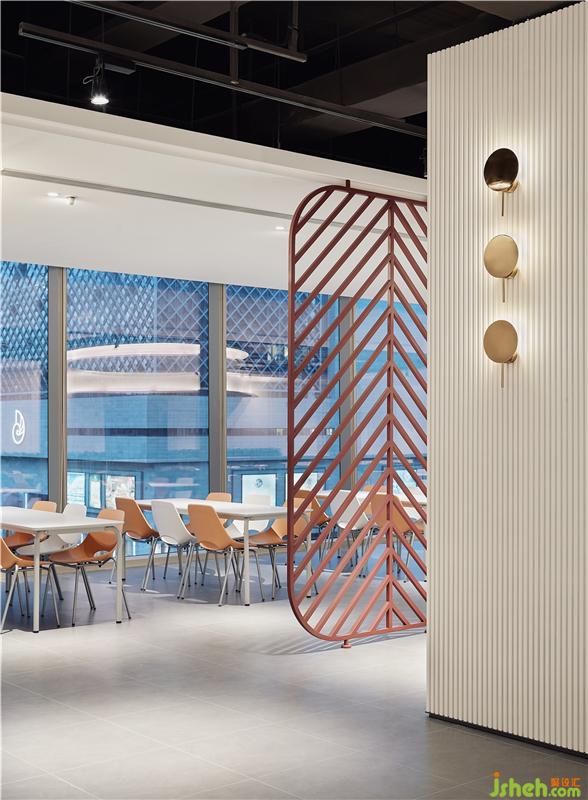 為了能夠顛覆大眾對潮濕悶熱食堂環(huán)境的刻板印象,YuQiang&Partners將時(shí)尚現(xiàn)代、摩登與節(jié)奏感融入簡單開放的空間,把深圳灣一號標(biāo)志性的絕美的都市無遮攔海景與陽光風(fēng)情最大化,對“員工食堂”的概念進(jìn)行一次全新演繹。餐廳設(shè)計(jì)