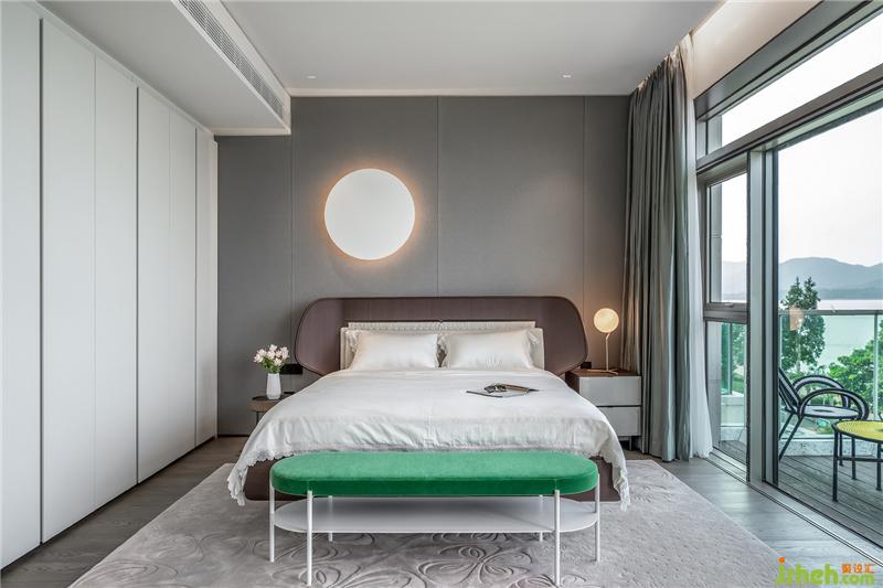 該空間設(shè)有8米寬超大全景落地窗,香港別墅裝飾海景風(fēng)光盡收眼底,為主人增添分外的生活情調(diào)。臥室、陽(yáng)臺(tái)與室外空間,通過(guò)一個(gè)開敞透明的玻璃門形成良好的空間分割又完美融合在一起。