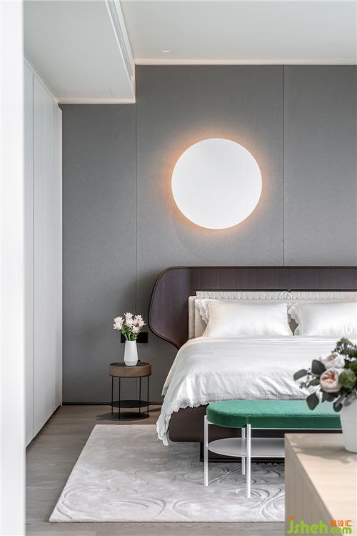 不論是包裹式布藝墻面,還是精心考慮的有主次的功能性照明,臥室都是在“舒適”為首要的前提下而展開。