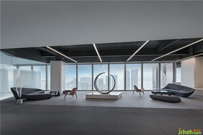 在這座外形如藝術(shù)館般的辦公塔樓中,YuQiang&Partners為招商蛇口打造了一個以藝術(shù)為載體,以能量為主題的當代商務(wù)辦公展示空間。