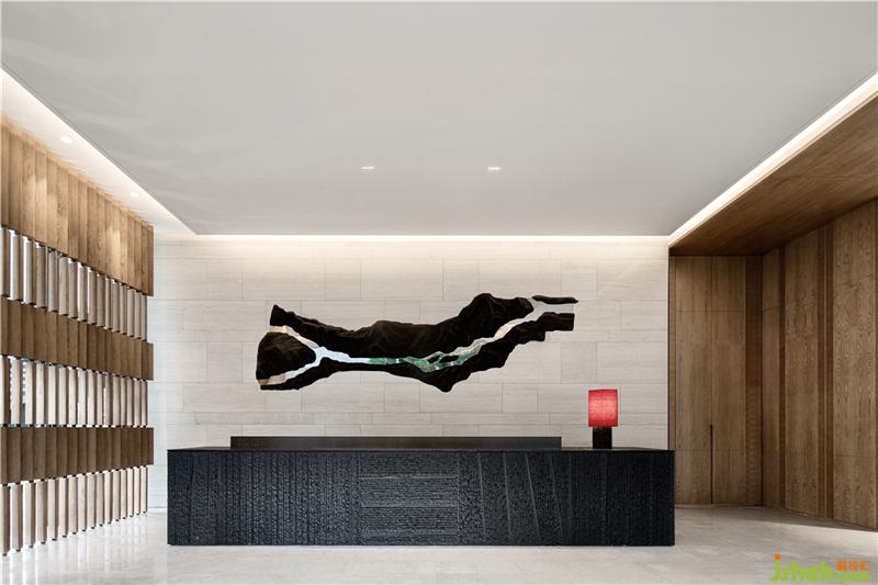 建筑在二層插入一個(gè)水體,打造“星空藝術(shù)館”概念,觀者在此抬頭可見(jiàn)滿目夜空,飽覽令人驚嘆的無(wú)邊江景,成為空間的最大亮點(diǎn)。