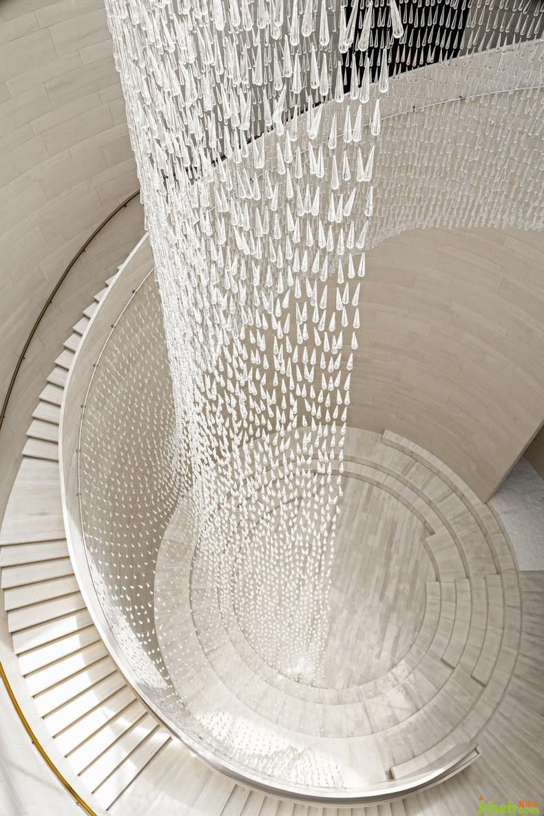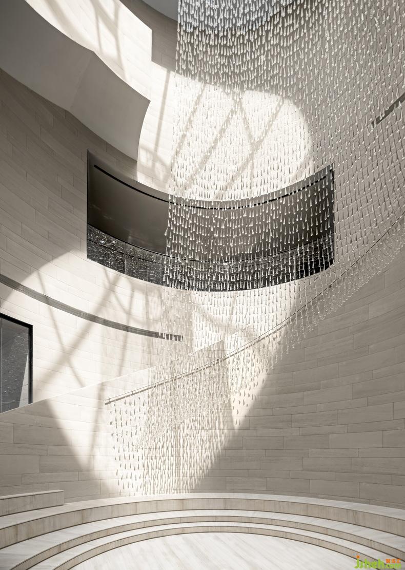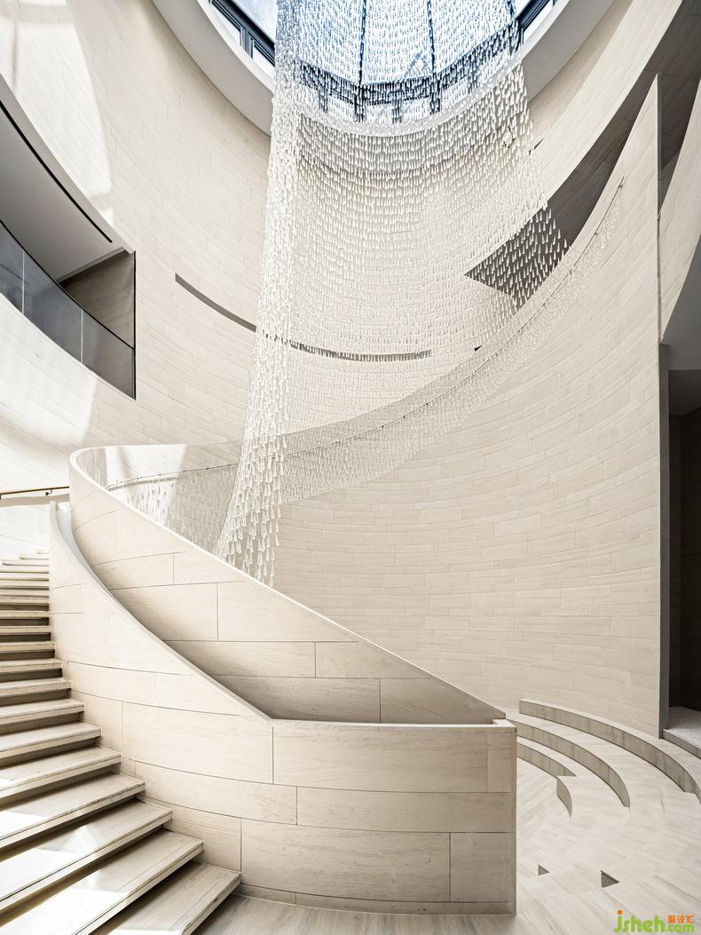 進(jìn)入這座海上“藝術(shù)方舟”,順著樓梯逆時針到達(dá)二層可俯瞰中庭自由的羅馬式廣場,也可仰望四時晨昏的變化。再由二層順時針回到首層原點(diǎn)時,不覺間已縱覽時間和空間兩種維度。