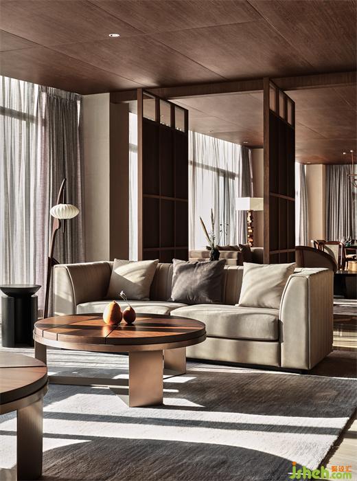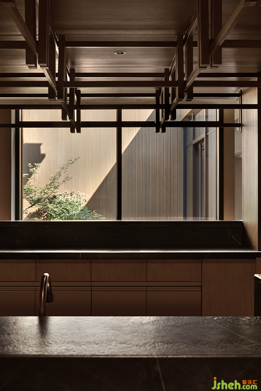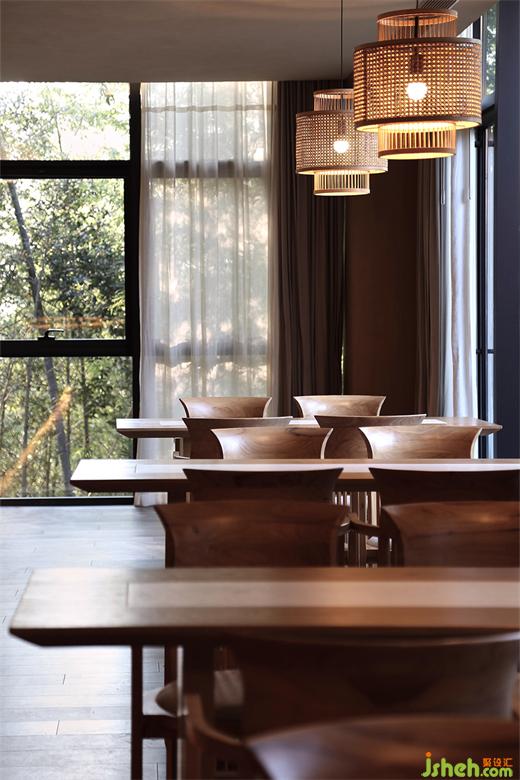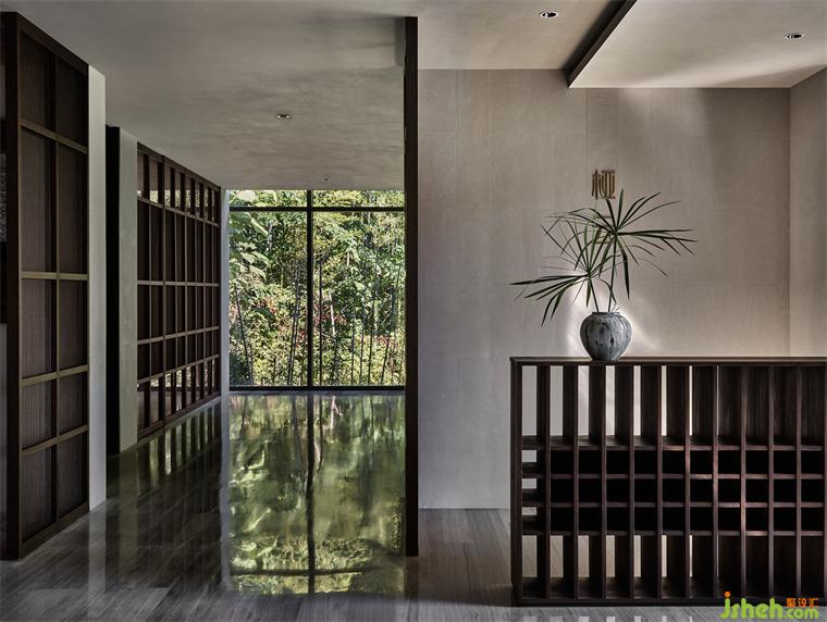 莊園酒店設(shè)計隨著日升月落,光明與陰翳的氛圍對比強烈,映在榻榻米上,襯托出安靜的禪境。這種“靜”,是與鳥啼、竹葉聲、腳步聲的細膩對照,讓人心曠神怡。