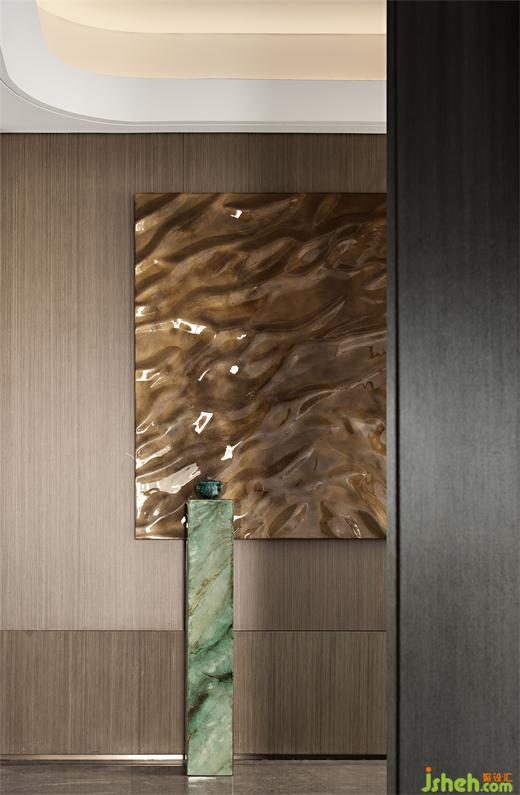 進(jìn)入玄關(guān),映入眼簾的一組藝術(shù)裝置,營(yíng)造了一種明月出天山,樣板房設(shè)計(jì)蒼茫云海間的詩(shī)意場(chǎng)景和儀式感。