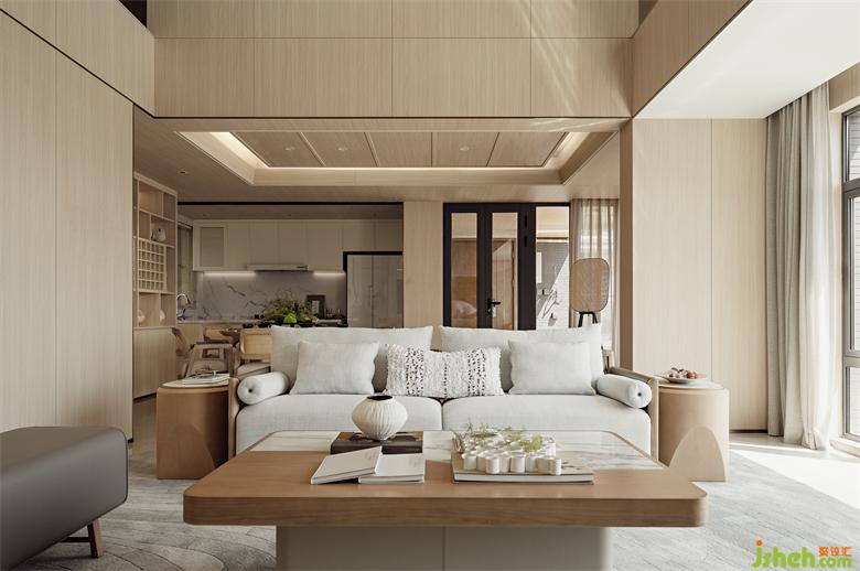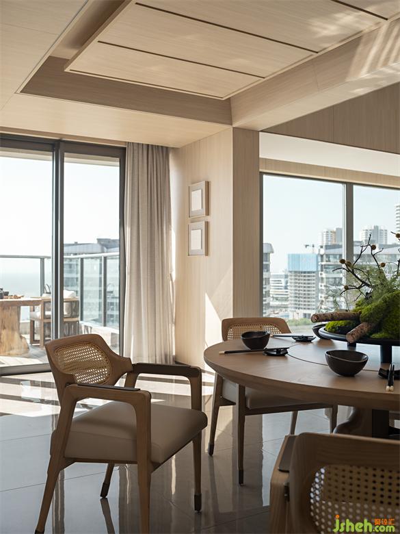 木質(zhì)色調(diào)顯得內(nèi)斂而富有質(zhì)感,把空間營(yíng)造出一種誘人的氛圍。天恒灣景復(fù)式海景庭院設(shè)計(jì)以枯木為底座的花藝,寓意著生命的循環(huán)往復(fù),從溫馨的原木到清新的綠枝,自然的溫潤(rùn)游走于空間。