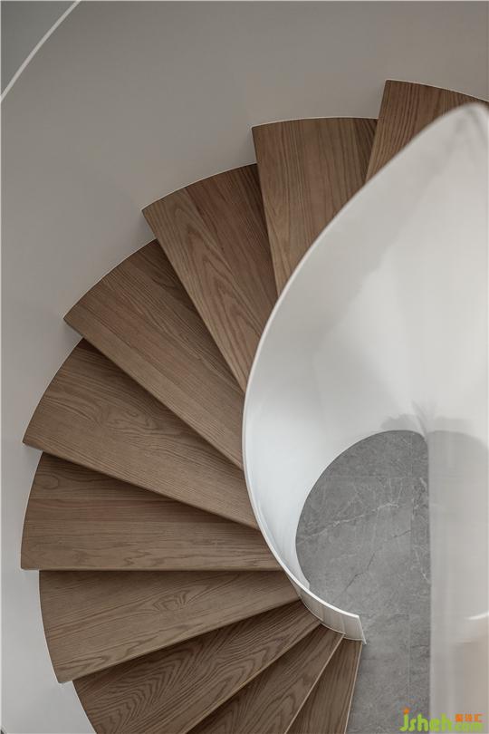 結(jié)構(gòu)上的調(diào)整是為了能夠更好解決原空間所存在問題。將原樓梯方向改變,成都裝修設(shè)計(jì)為采用鋼結(jié)構(gòu)打造的旋轉(zhuǎn)樓梯,不占一樓太多面積的同時保證其它空間的合理性。明亮溫暖的色調(diào)與輕盈靈動的線條讓整個樓梯成為工藝品般的存在,承載了空間的藝術(shù)美學(xué)。