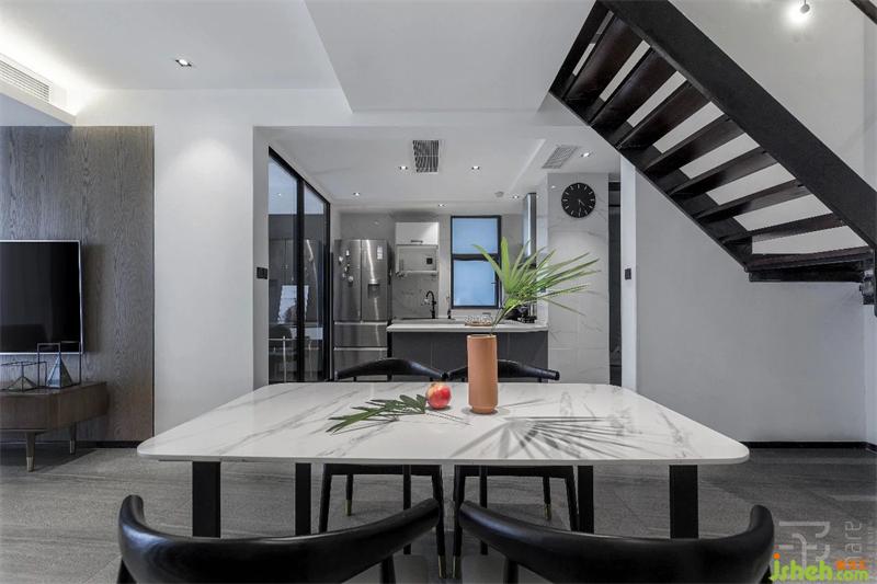 餐廳與廚房的巧妙結(jié)合,打破了原本狹長、空間局促的餐廳;改造后擁有一個完整的餐廚空間,餐廳也顯得更加整體,大氣。