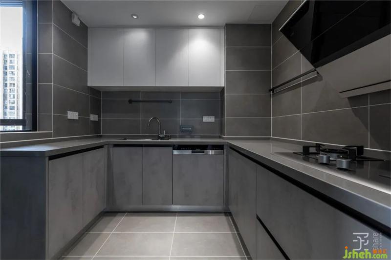 灰色的廚房空間,難得的U型櫥柜,將冰箱放到餐廳,空出更多的廚房操作空間。那些我們不曾說(shuō)出口的愛(ài),有一半藏在了廚房的時(shí)光碎片里,忙碌是,期待更是。