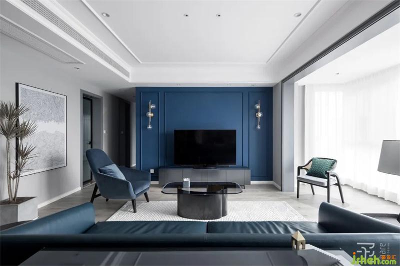克萊因藍以其冷麗清亮的色調(diào)在大面積應(yīng)用時能帶來恢弘的高雅氣勢,成都家居設(shè)計結(jié)合著用于點綴空間的黑白色調(diào)的畫幅,富有著獨特視覺沖擊,白色大理石桌面光亮的質(zhì)感所營造出的時尚奢美質(zhì)感更是令人驚艷。