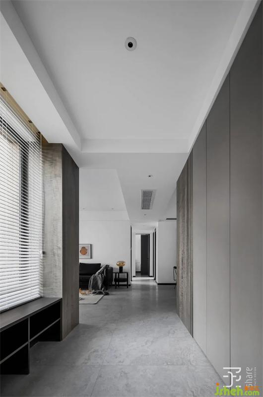 空間對比強(qiáng)烈的體塊分割讓這個家充滿了理性、秩序與簡約之美,而溫暖感則透過帶有生活痕跡的小物件和細(xì)節(jié)展現(xiàn)。