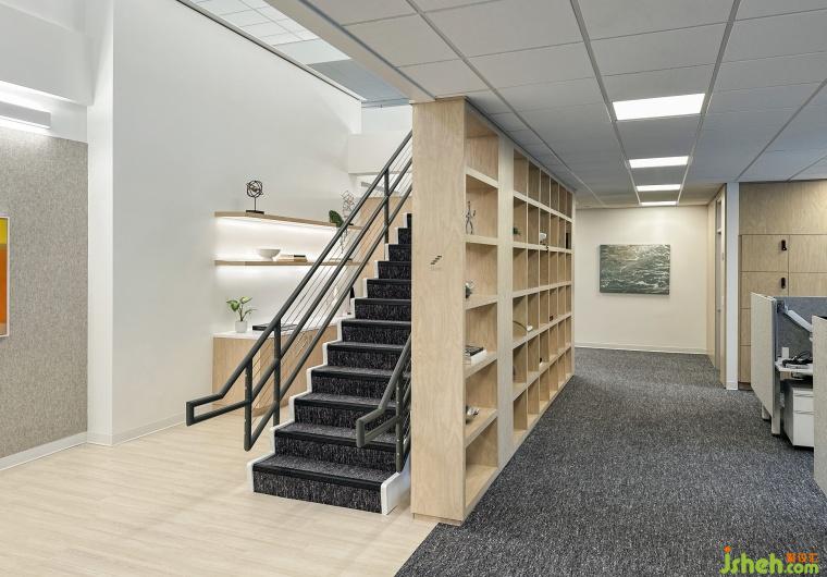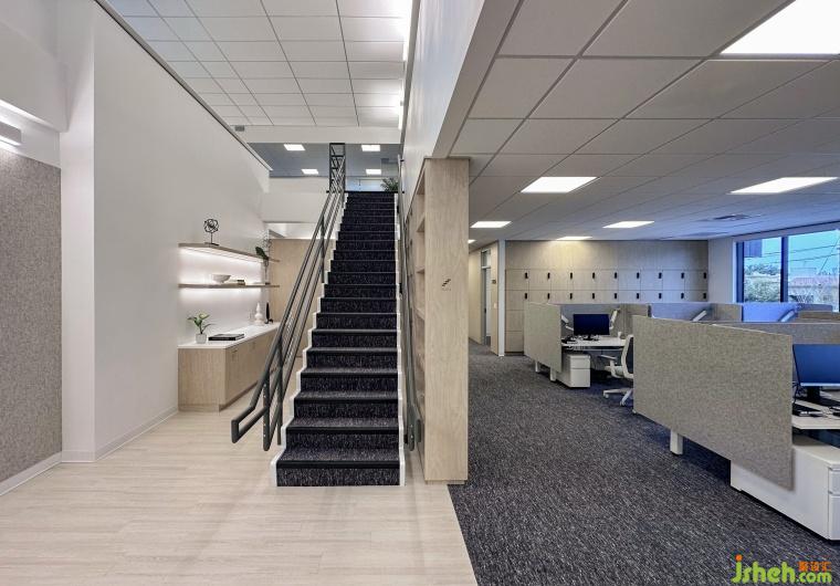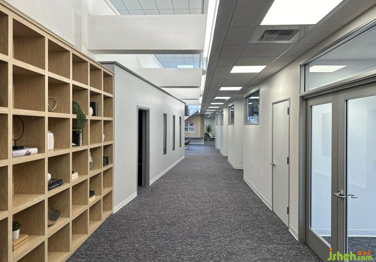 走廊的地面材料與墻壁的變化,形成了視覺上的層次分明,從而營造出一種“漸進(jìn)式”的空間節(jié)奏感。辦公空間設(shè)計地面和墻壁的銜接處選用不同質(zhì)感的材料,使得光線在其表面產(chǎn)生了柔和的反射與折射,光影隨時間流動,賦予走廊一種動態(tài)的生命力。
