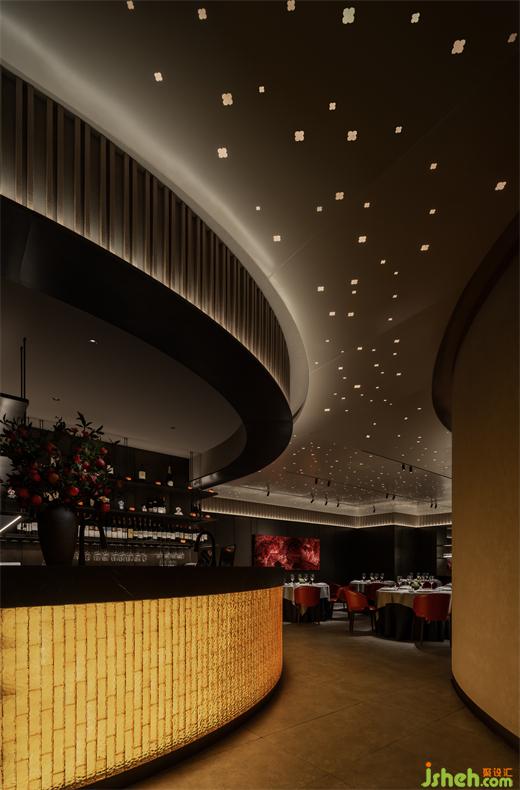 本案位于上海靜安嘉里中心,在這個(gè)充滿美學(xué)的餐廳空間里,設(shè)計(jì)師巧妙地融入了柿花的形態(tài),讓整個(gè)空間充滿了多樣性和煙火氣。無論是宴會(huì)區(qū)、水吧區(qū)、卡座區(qū)還是包廂,都彌漫著柿花的獨(dú)特魅力,讓人們?cè)谙硎苊朗车耐瑫r(shí),也能感受到自然與藝術(shù)的完美結(jié)合。