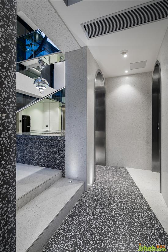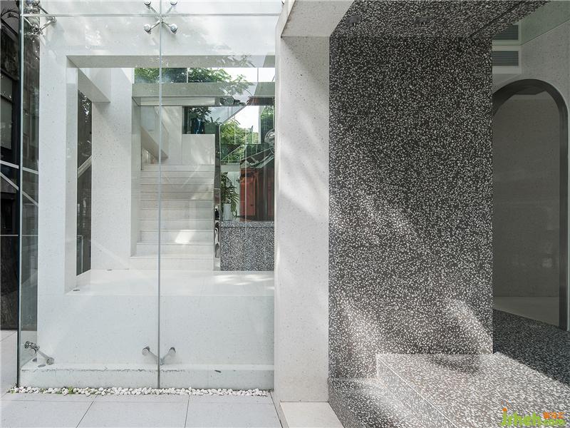 ▼ 水磨石、不銹鋼、玻璃三種現(xiàn)代材質(zhì)之間的對(duì)話