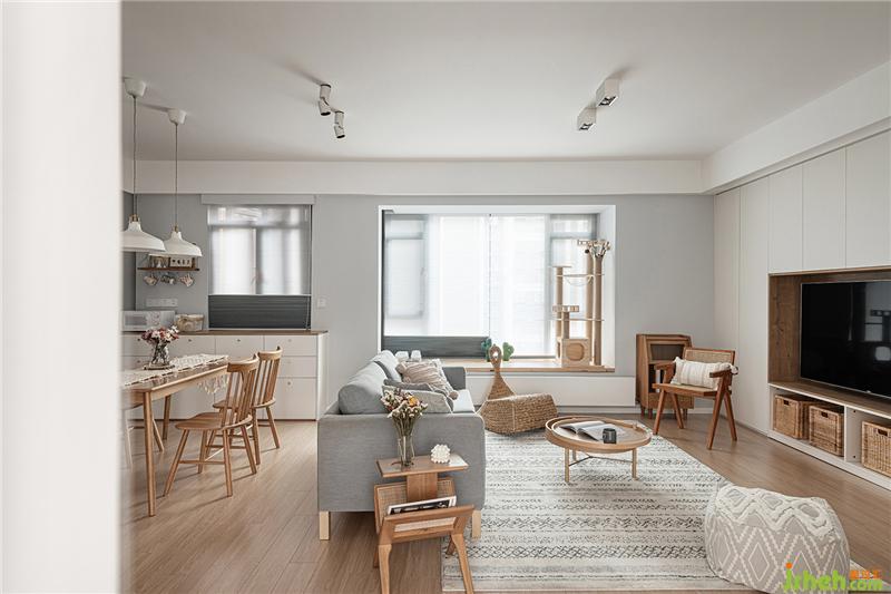 情緒:整體設(shè)計(jì)采用木、白、灰色為主,以素雅、低飽和度色系營(yíng)造空間氛圍??臻g中仿佛罩了一層濾鏡,創(chuàng)造出寧?kù)o、淡雅的居家情緒。