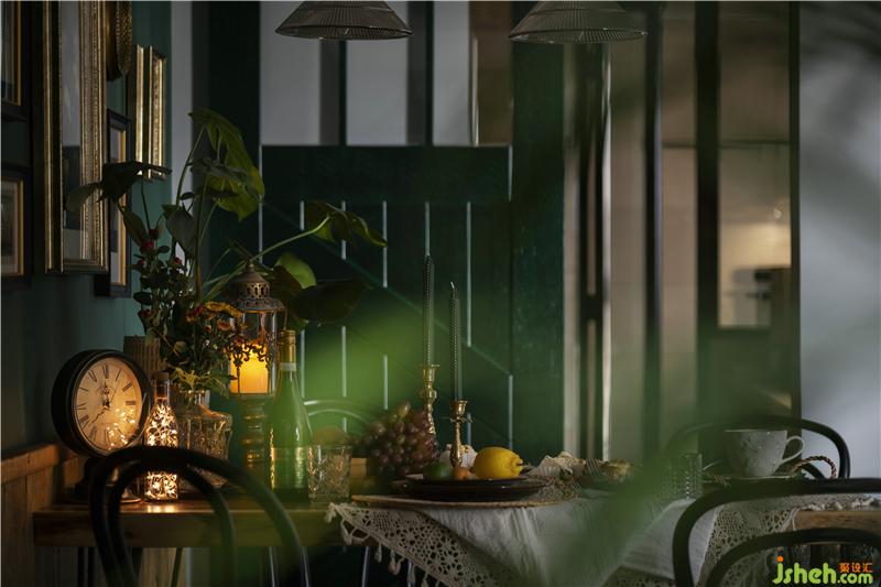 餐廳以暖色老木板與深綠色進行冷暖強烈對比,自然光影與氛圍燈光交相呼應(yīng),電影畫面感十足,餐桌上的食物在氛圍的營造下色澤感強,食物在畫面中更顯的鮮美,一副飲食浪漫畫面躍然而生。