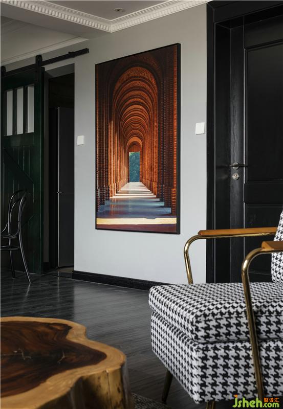 客餐廳延續(xù)暖色老木板元素,整個空間采用了質(zhì)樸的棕色,紅色同色系作為輔助色,墻面采用灰色為主調(diào),轉(zhuǎn)換空間畫面的同時,隨著光影變化,讓空間更具沉穩(wěn),過道處充滿藝術(shù)氣息的掛畫,更給空間帶來了藝術(shù)氣息。