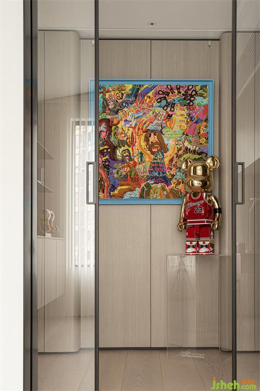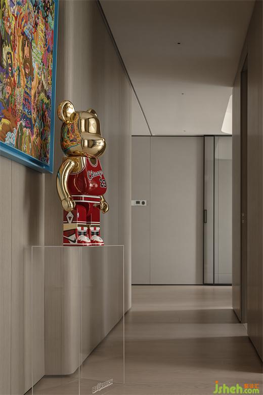 走廊內(nèi)退墻體,讓人的視覺被聚中,較長的走廊空間好像變成了藝術(shù)展館,豪宅設(shè)計(jì)將愛好填入生活的場景,融入現(xiàn)代時尚的格調(diào),展現(xiàn)居住者的生活色彩。