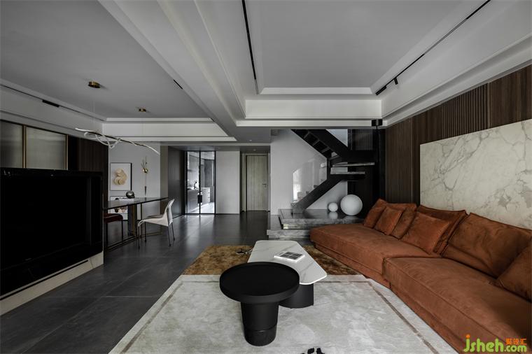 樓梯設(shè)計懸浮感,就像一件藝術(shù)品陳列于空間,增強空間張力感。