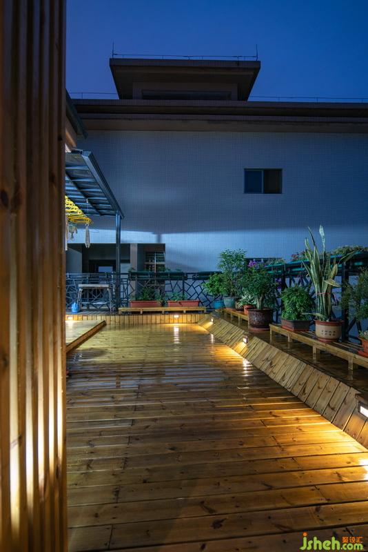 二樓小起居室與露臺的隔墻全部改成玻璃窗,室內外采用同一色調木紋地板,模糊內外的界線,提高居住體驗。室內外模糊界限,介于現實與虛無之間,室內設計師運用玻璃窗,將兩者互通有無,隨著日出日落之變化,內部空間也自成一派,生機盎然。