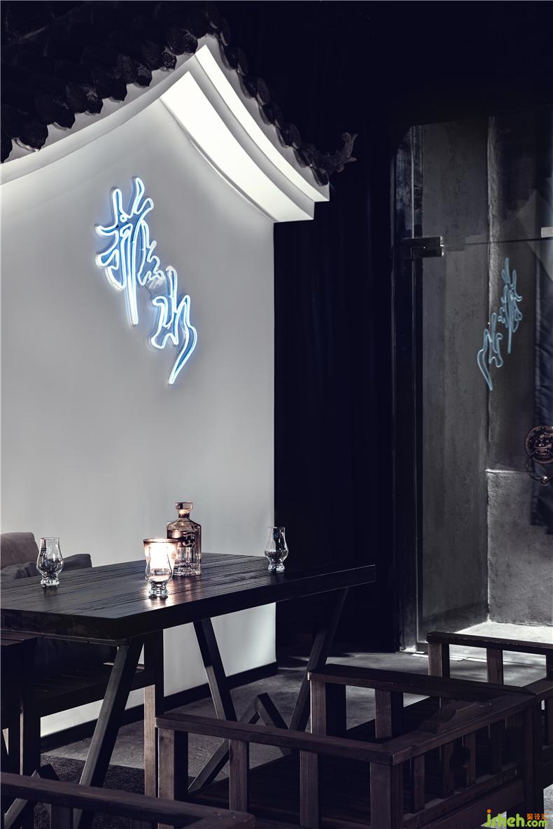 The strong and powerful word "water" on the white wall is a kind of exploration for the lifestyle of designers. At the edge of tradition and innovation, the concept of virtual service empowerment through physical design is constantly impacted, which connects the infinite possibility of design and real life. Every time you enter this bar, you can feel the innovation of Chinese aesthetic.