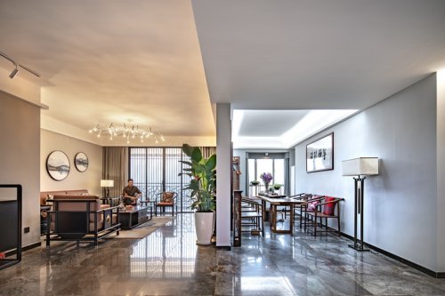 The design endows different elements with a brand-new language. When the Chinese courtyard integrates with wind elements, it can make people marvel at the keen creativity of the designer. The moving line of the space is linked up by thick pedals. The fine gravel and bricks piled up on the roadside inadvertently connect the memory of the indoor space.
