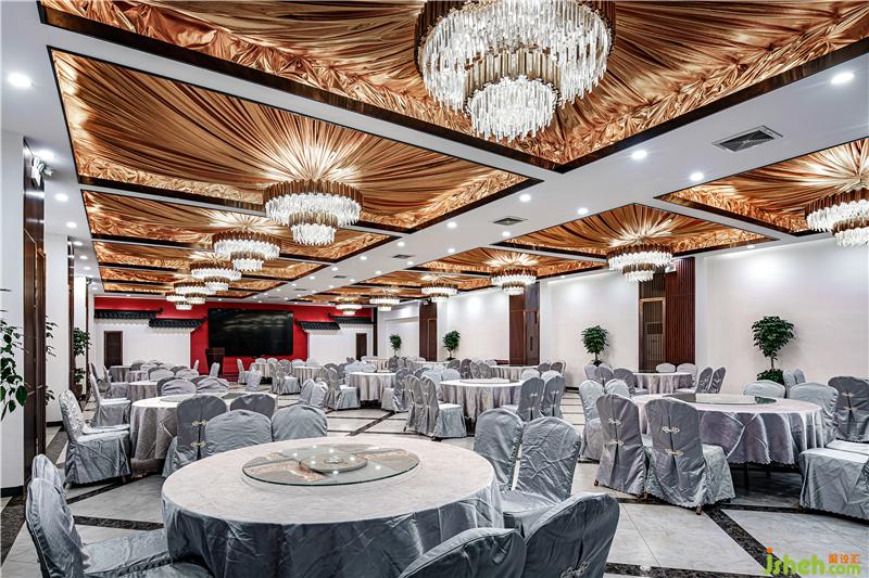 精致的鎏金天花搭配以大塊面的白色,古時(shí)的村頭戶外采用喜慶的紅色,消融了實(shí)有的空間隔閡。
