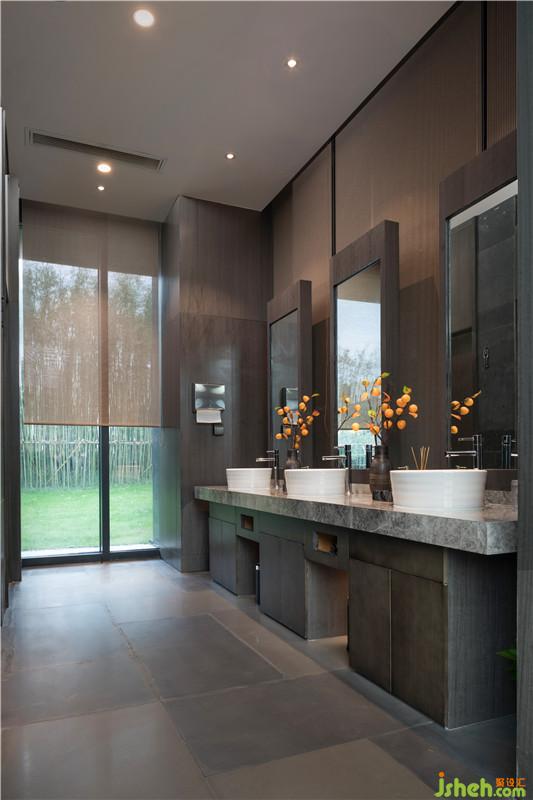 衛(wèi)生間的空間布置也是延續(xù)湖居特色的格調(diào)、引入東方特色藝術(shù)裝置畫及擺件以意境的營造為主、深遠(yuǎn)而幽靜。