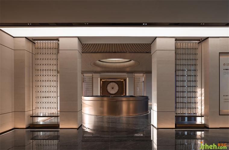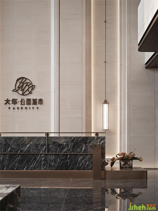 往空間之中深入,接待臺典雅的石紋與內(nèi)斂的支桿金屬組合就像畫卷般令人感到靜謐,壁燈柔和的光源輕柔流暢的從身上落下,照亮接待臺的臺面,正式開啟此次體驗之旅。