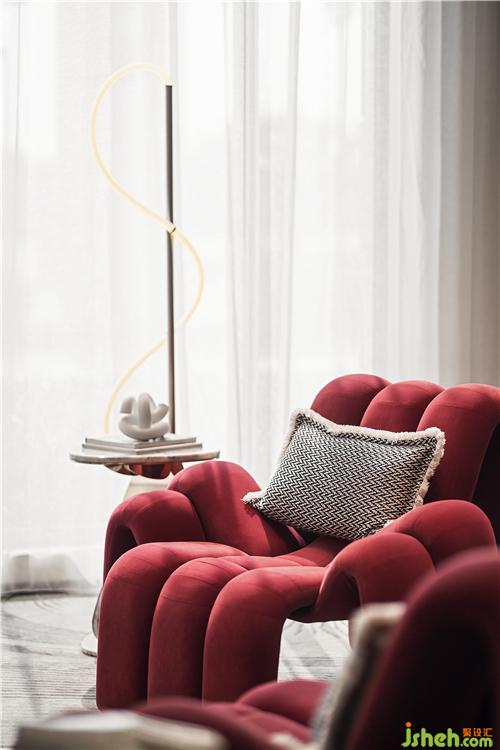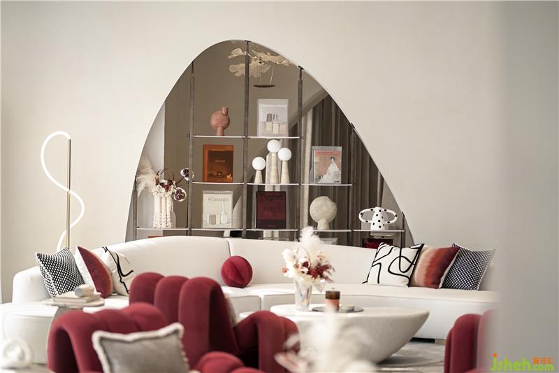 深恰區(qū)打造弧形半圍合洞穴空間,在風(fēng)格上依舊延續(xù)了前廳的現(xiàn)代簡約的體驗感。