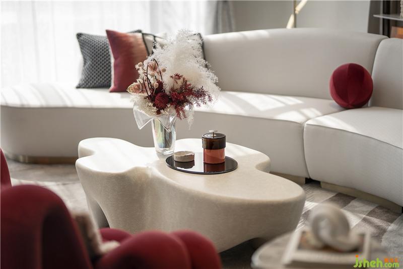 空間引入“花”主題雕塑營造浪漫氛圍,設(shè)計希望通過空間與人之間的互動產(chǎn)生新的碰撞。