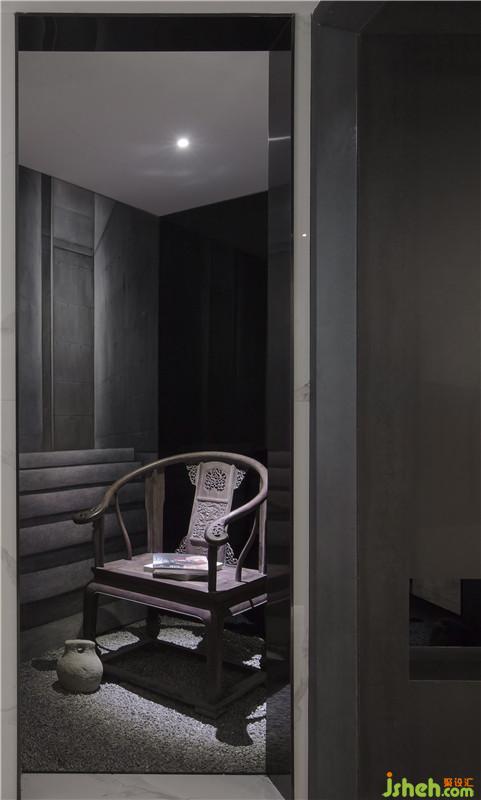 大廳的鋼構(gòu)樓梯是本次設(shè)計的一個重心,同時也是一個施工難點。經(jīng)過反復(fù)推敲結(jié)構(gòu)層次,把樓梯踏步石材延伸為前臺臺面,同時將其端口作為水景瀑布的出水口,在滿足了使用功能的前提下更像是一件融入空間的藝術(shù)品。