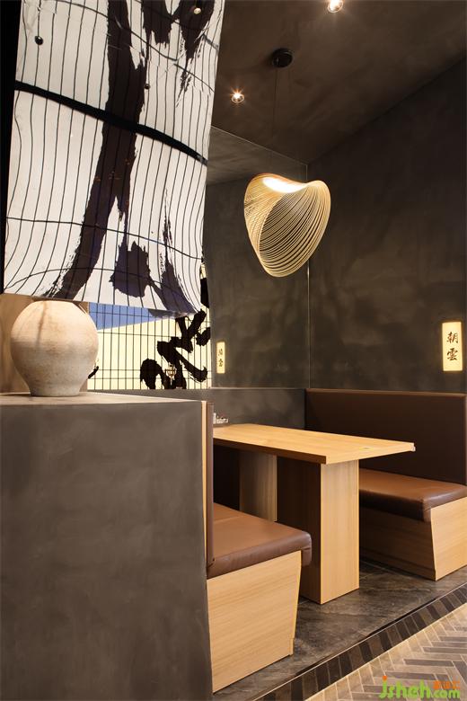 一樓北辰、靈澤、朝雲(yún)卡座依次而立,古人對(duì)于星星、雨水、云朵等萬(wàn)物的雅稱,將美好寓化于物,富有深意、又催人而上。名稱運(yùn)用,料理設(shè)計(jì)顯示獨(dú)到匠心之處。山際見(jiàn)來(lái)煙,竹中窺日落。