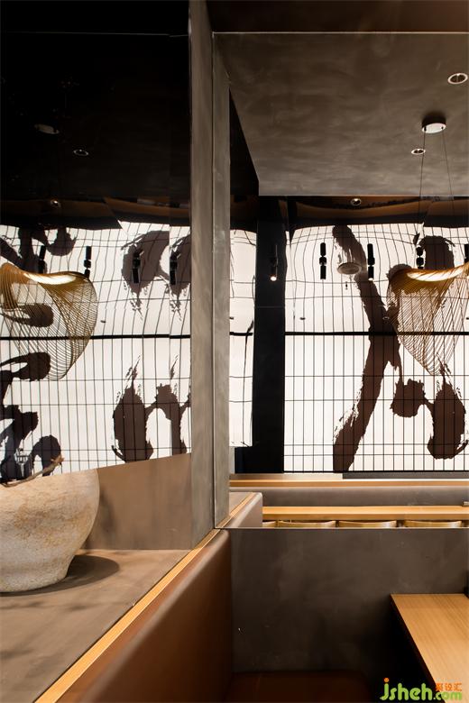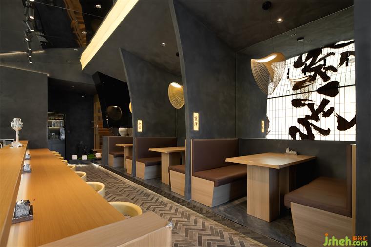 明檔處延續(xù)門(mén)頭設(shè)計(jì)手法,采用毛筆字搭配燈箱設(shè)計(jì),燈閣在日本文化寓意著希望、幸福和祈福,與遒勁的雲(yún)川字體交織,心向雲(yún)端,俯望山川。傳統(tǒng)書(shū)法與現(xiàn)代日本料理文化相融合,文化中和的趣味令人回味無(wú)窮。