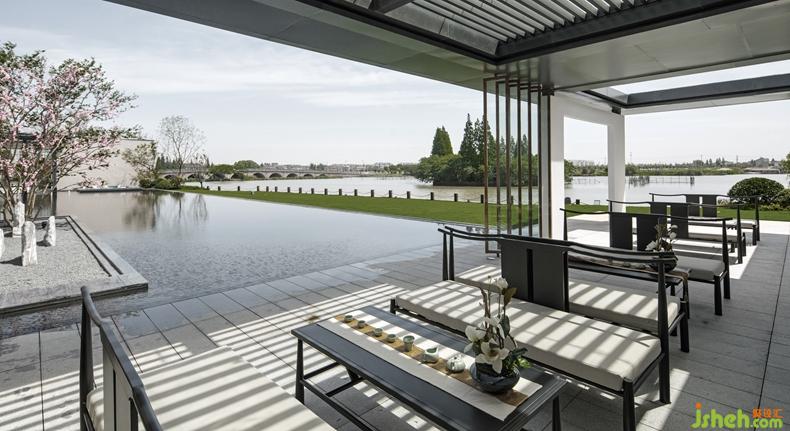 設(shè)計(jì)師將現(xiàn)代的生活融入江南古鎮(zhèn)的白墻煙雨,石橋月半中,放慢生活的同時(shí),享受琴棋書(shū)畫(huà)的樂(lè)趣。休息區(qū)一顆藝術(shù)枯山水,一盞素色落地?zé)?,?yáng)光透過(guò)紗質(zhì)般的窗簾落在水波紋的地毯上,金屬擺件泛著歲月打磨過(guò)的光澤,使室內(nèi)與室外相互通聯(lián),內(nèi)外歸一,自成一景。使人沉醉于此,不見(jiàn)庸俗之色,只在意、境當(dāng)中。
