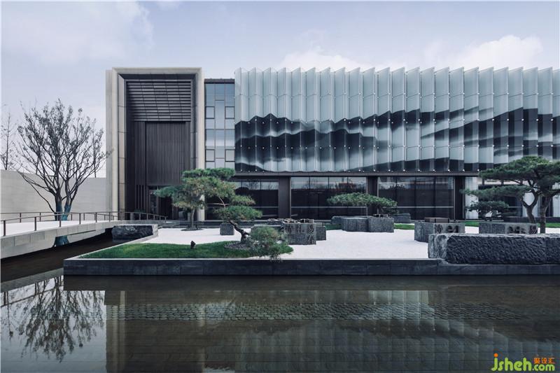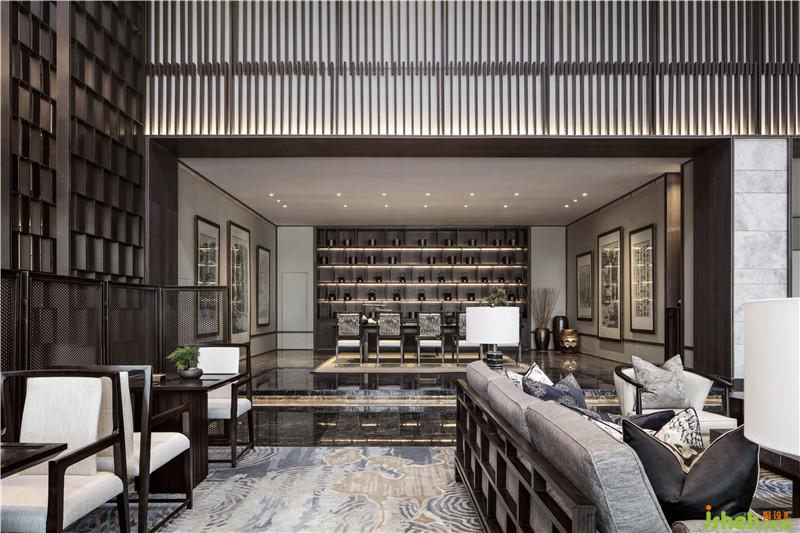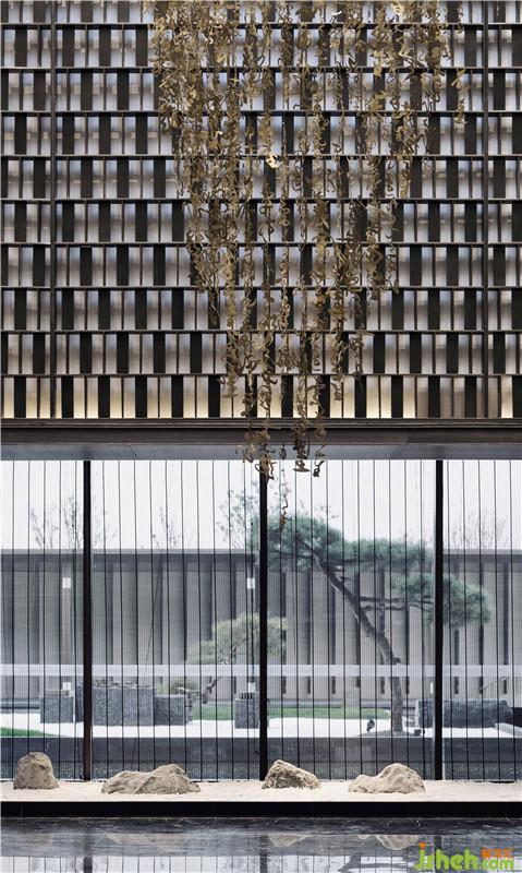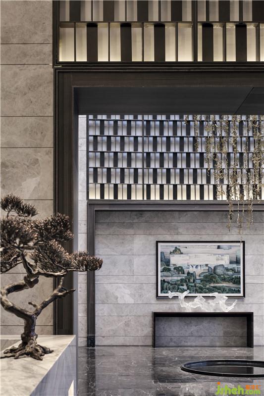 雄偉之氣在于追訪古韻。接待前廳縱深空間的盡頭是裝飾有汗青鎧甲的背景墻,既延續(xù)春秋戰(zhàn)國文化,又?jǐn)[脫青銅器的一味厚重,其上點綴山石造型,硬朗大氣中透露出現(xiàn)代主義的自然流暢。