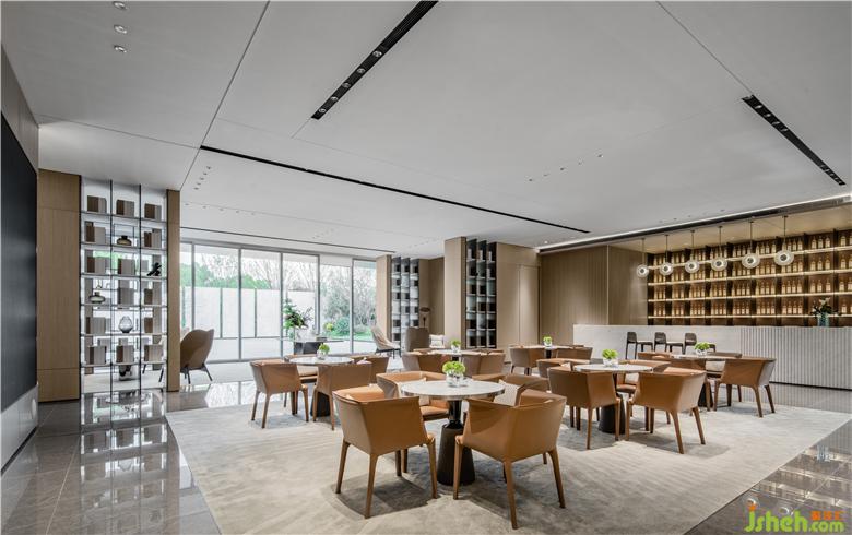 含蓄而內(nèi)斂的橘色彰顯出低調(diào)的氛圍與品位,寧?kù)o的色調(diào)中透著從容不迫,柔軟的布藝和細(xì)膩的皮革、大理石和木質(zhì)、玻璃和金屬、不同材質(zhì)的相融合,達(dá)成柔和的微妙觸感,展示中心設(shè)計(jì)提升了整體空間的品質(zhì)和精致細(xì)節(jié),從而的發(fā)揮出無(wú)限的魅力。