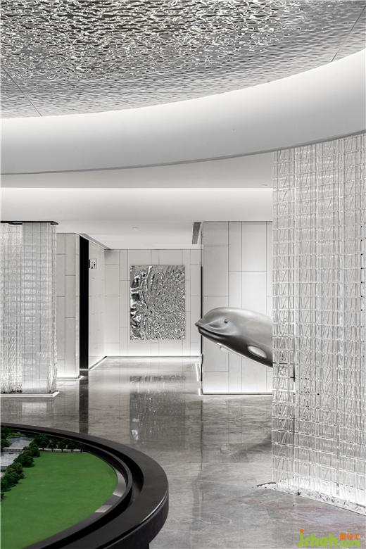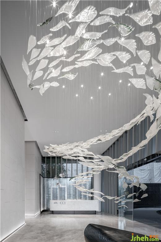 售樓處設(shè)計(jì)從上而下的藝術(shù)魚群裝置貫穿其中,使新老交匯,魚群裝置,輕盈流動(dòng),猶如置身海洋,讓藝術(shù)與人文對(duì)話,在萬(wàn)物的自然中,是傳統(tǒng)與現(xiàn)代相融,風(fēng)貌與未來(lái)的同在。