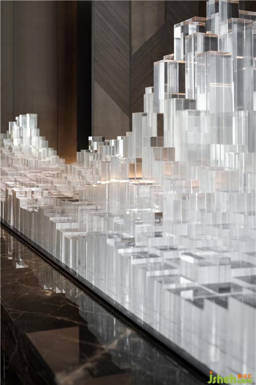 木飾面背景墻在空間高度上的延伸,具有穿透性和獨(dú)立性的立面,這些處理方式都令空間充滿著不同的視覺趣味。相互牽引,游觀與此,或行或坐,繁華炫目,思緒沉浸在字里行間,三兩而坐,藝術(shù)生活,追尋永恒之美。