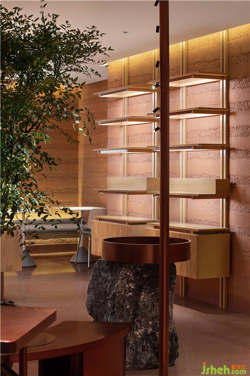 空間以具有80年歷史的大益茶品牌文化為基底,結(jié)合現(xiàn)代都市人的審美喜好和消費(fèi)習(xí)慣,重新定義空間的視覺風(fēng)格和功能體驗(yàn),空間整體設(shè)計(jì)為暗紅色的基調(diào),好似普洱茶茶湯的顏色,厚重且清透。在眾多零售店中鮮明且突出。