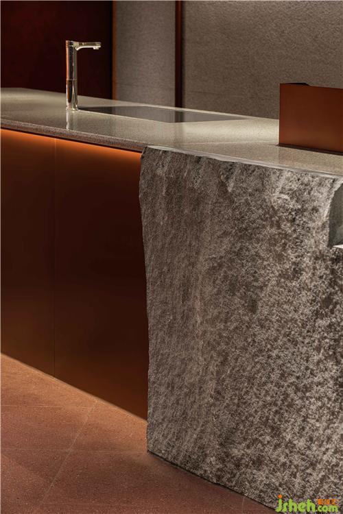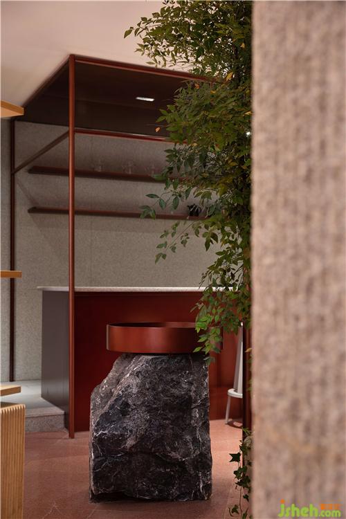 空間中大面積使用自然透氣的紅色泥土,配合細(xì)膩溫潤的紅銅,點(diǎn)綴天然樸質(zhì)的原木,徹底摒棄裝飾與華麗,呈現(xiàn)高度真實(shí)且單純的自然之美。