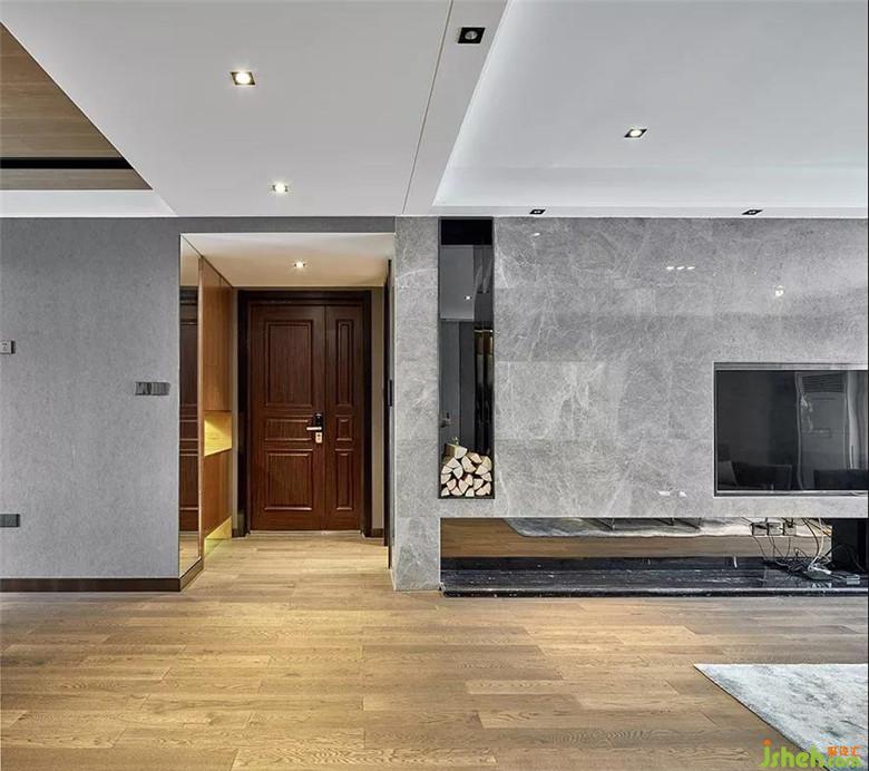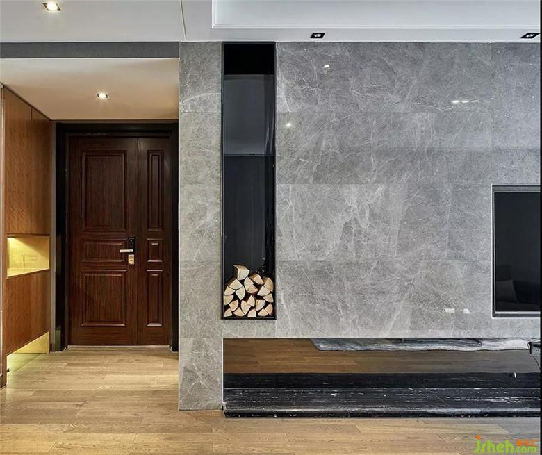 ▲電視背景墻采用了原始紋理的石材鋪設(shè),其中又匠心獨特地嵌入了一組壁爐,幾塊隨意堆砌的木柴。原本大氣硬朗的一隅,更添了幾分火熱的溫情。