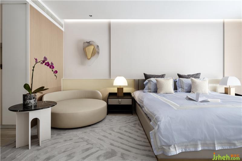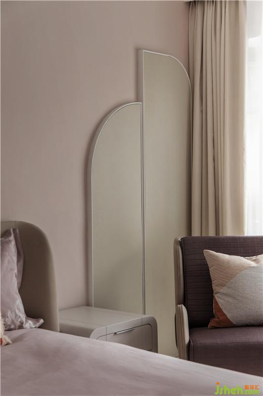 主人房繼續(xù)沿用了女主人偏好的簡約淡雅色調(diào),并與過道形成了風(fēng)格上的延伸關(guān)系。