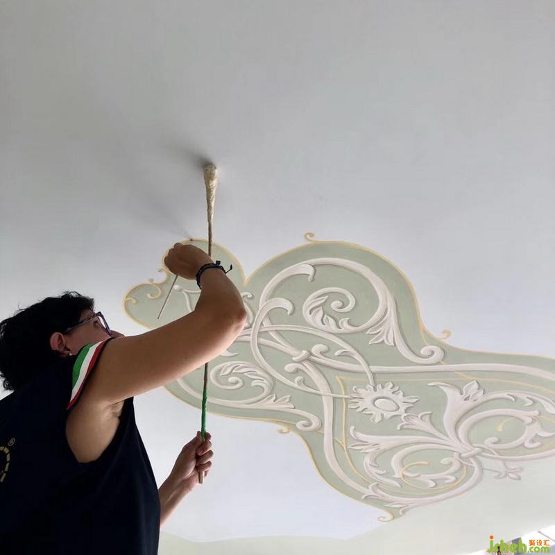 值得一提的是,整個空間內(nèi)所有象征著文化傳承的精美天花板手繪藝術都來自意大利熱那亞文化,更是專門邀請到意大利藝術團隊親自到場手繪圖畫。