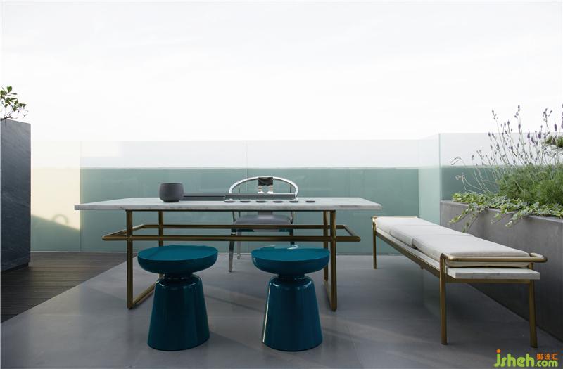 踏上懸空而輕盈的樓梯,迎面而來的是戶外茶室,為了讓視野更加純粹和安逸,四周的欄桿用磨砂玻璃加高,即保護了隱私,又把天空以外的東西給遮擋掉;泡上一壺清茶,沒有世間物的繁雜,讓心情更加豁達。室內(nèi)設(shè)計師