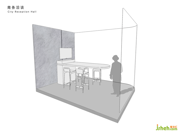開放的展廳空間中,也必然少不了對私密性的思考。商務洽談與私人會客區(qū)域通過光電玻璃的運用,巖板展廳設計巧妙的平衡了空間的私密性與開放性。