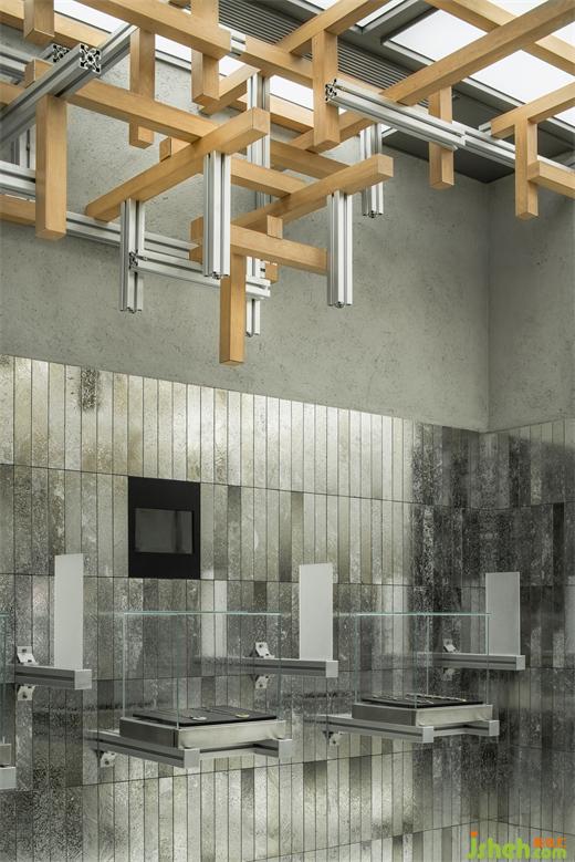 空間提取斗拱這一構(gòu)件背后所承載的文化內(nèi)核,適配當下語境,在原有的斗、升、拱、翹造型組合上做減法,并在傳統(tǒng)木材之上融入金屬材質(zhì),完成整體組合架構(gòu)。