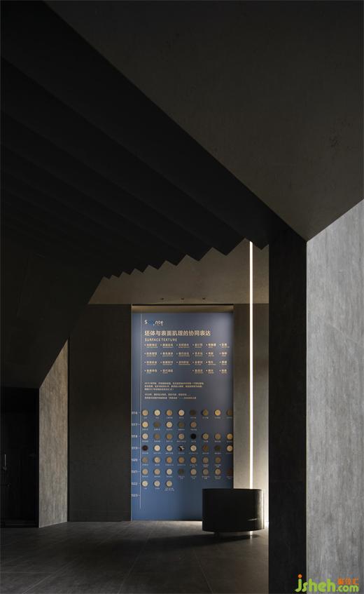 “璞”系列磚應(yīng)用打造的電動(dòng)門下暗藏通道,在開與合的平衡中,使展廳內(nèi)外發(fā)生奇妙的光學(xué)反應(yīng),展廳設(shè)計(jì)構(gòu)建出人與空間初見的起承轉(zhuǎn)合,調(diào)動(dòng)著人進(jìn)一步去探知。