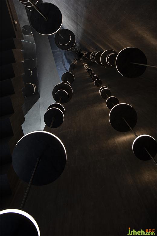 建筑內(nèi)構(gòu)、裝置藝術(shù)、光影美學(xué)等手法,皆被納入空間的表達(dá),讓空間跳脫出形式本身的靜態(tài)桎梏,人隨光行,由視覺牽引著行走,形成了空間動(dòng)線上的延伸感。