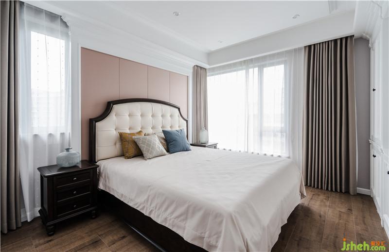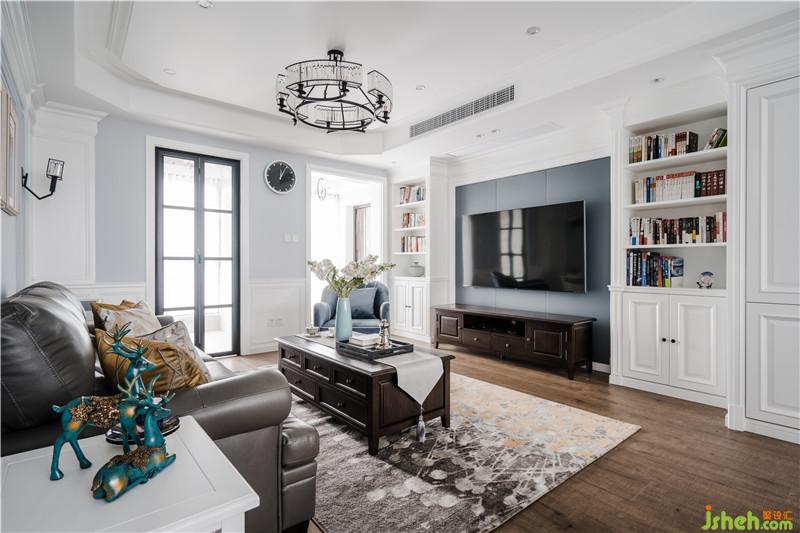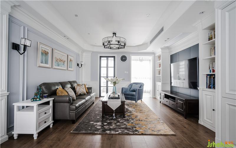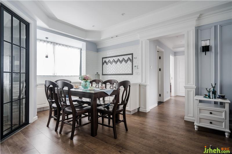 本案整個(gè)空間以美式風(fēng)格為整體鋪墊,客廳和臥室分別用藍(lán)色和粉色作為主色調(diào),純凈的藍(lán)色在客廳中主導(dǎo)了一種紳士味的穩(wěn)重色彩,暗調(diào)的粉色則在臥室里主導(dǎo)了一種淑女派嫻靜的氣質(zhì)。設(shè)計(jì)師在空間改造上調(diào)整了廚房的格局,采用不規(guī)則幾何形擴(kuò)大了廚房的空間使用面積,視覺(jué)上又增加了客餐廳的空間。室內(nèi)設(shè)計(jì)師